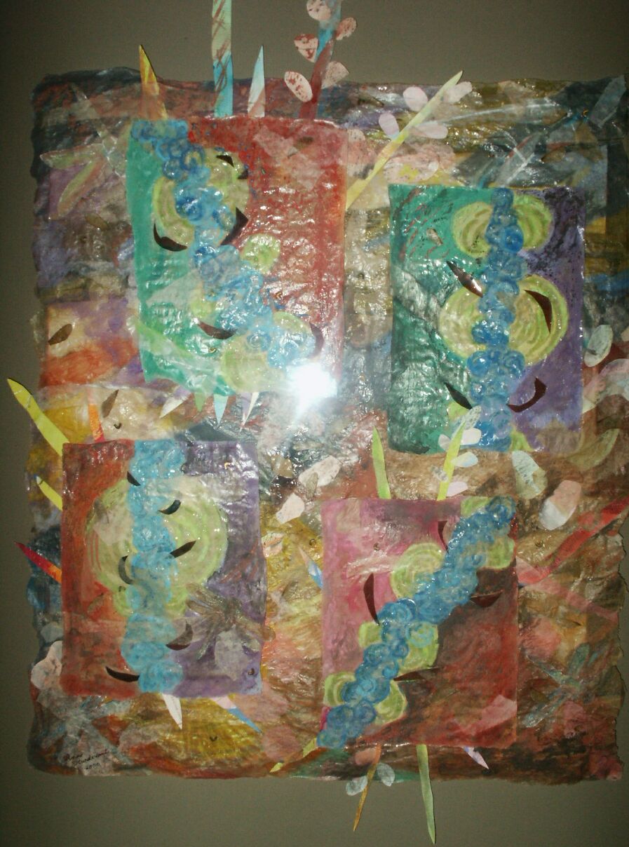 Title:Back To The Garden Medium: Mixed Media Collage Framed: Yes Price: $450 SOLD Height: 36" Width: 28" Year: 2002 Email Ann Sturdevant