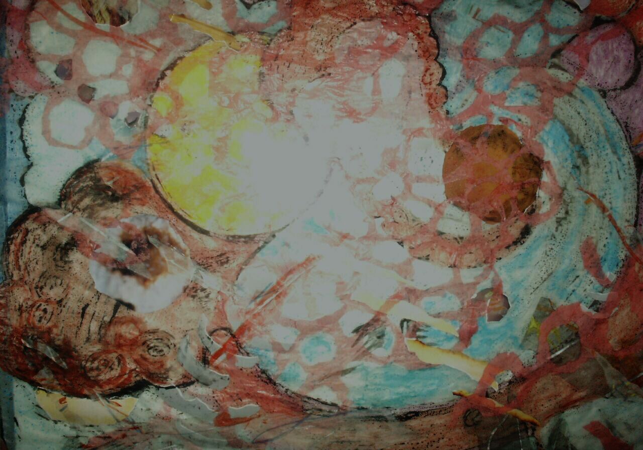 Title:February Night Sky Medium: Mixed Media Collage Framed: Yes Price: $450 Height: 28" Width: 36" Year: 2002 Email: Ann Sturdevant