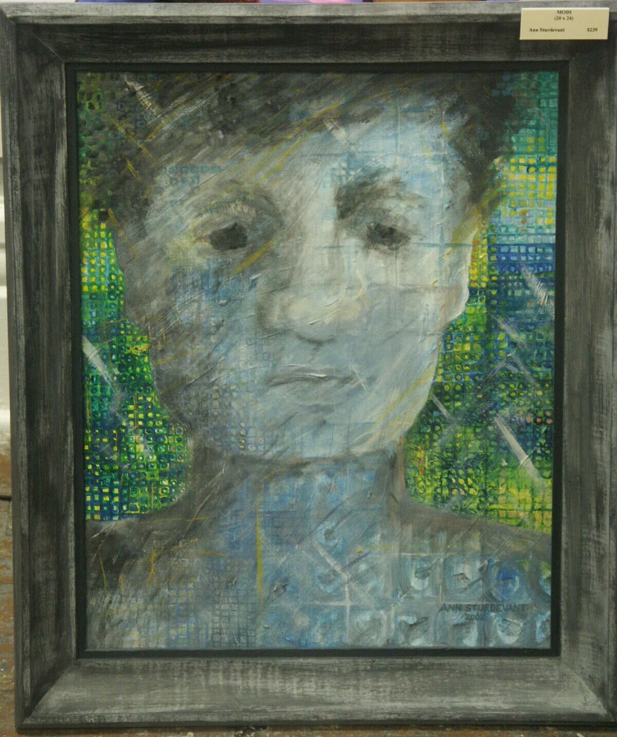 Title: Modi Medium: Acrylic Framed: Yes Price: $295 Height: 34" Width: 22" Year: 2002 Email: Ann Sturdevant