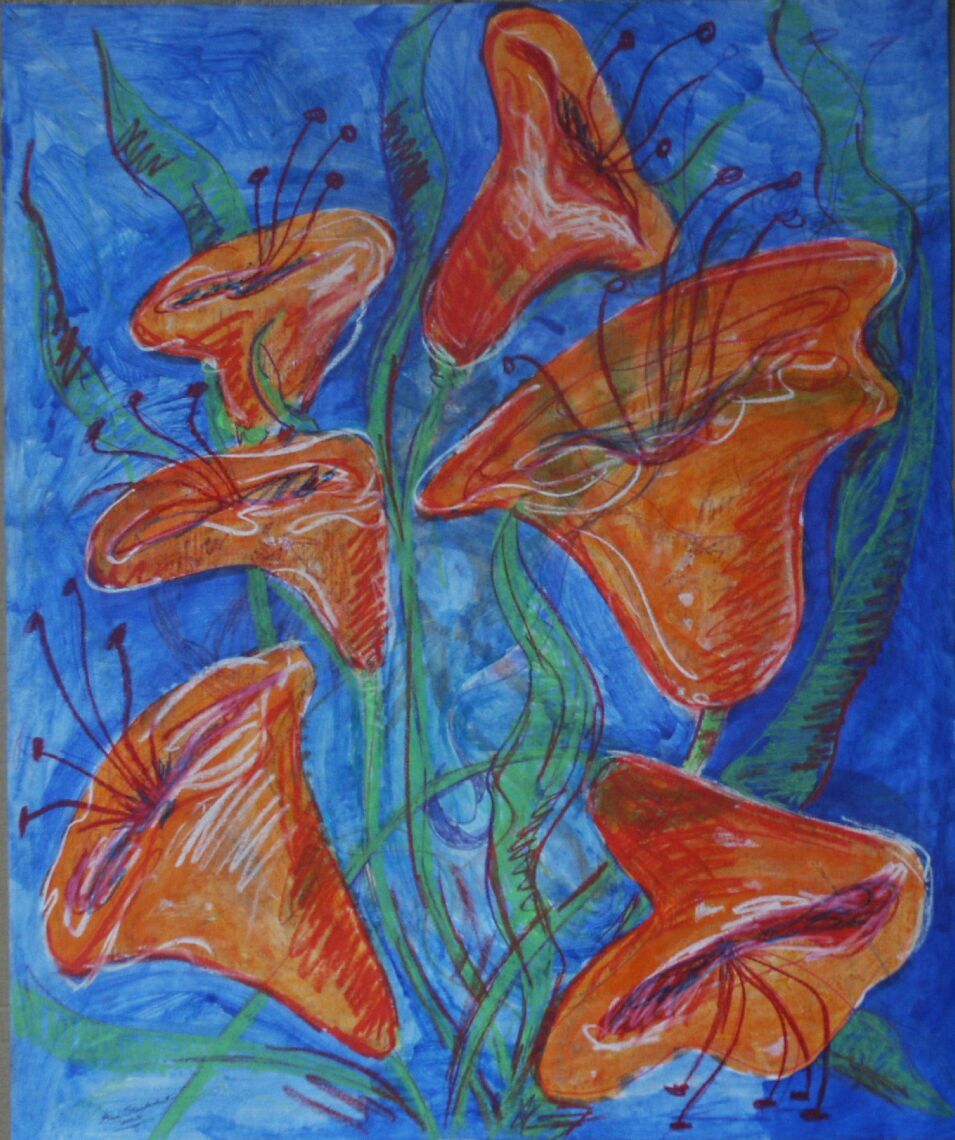 Title:Orange Medium: Acrylic and Oil Pastel Framed: Yes Price: $450 SOLD Height: 45" Width: 36" Signature: Yes Year: 2002 Email: Ann Sturdevant